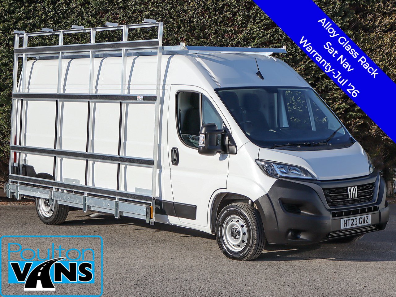 2023 (23) Fiat Ducato 35 Business Pro 2.3 Multijet II 140bhp, L3 H2 LWB Glass Rack Van, Sat Nav, Air Con, Cruise Control, Bluetooth, Apple CarPlay, Android Auto, Reverse Parking Sensors, DAB Radio, USB, Touch Screen Media, Stop Start, Electric Windows, Electric Mirrors, Multi-Function Steering Wheel, Remote Central Locking, Spare Key, 3 Seats, New Topfleet Alloy Glass Rack / Frail With Roof Rack + Roller And 4 Shoreing Bars, Side Load Door, Barn Rear Doors, Ply Lined, Steel Bulkhead, Running Lights, Manufacturers Warranty Till 24/07/2026,Euro 6, 6 Speed, Ex Contract Lease, Ulez Compliant.