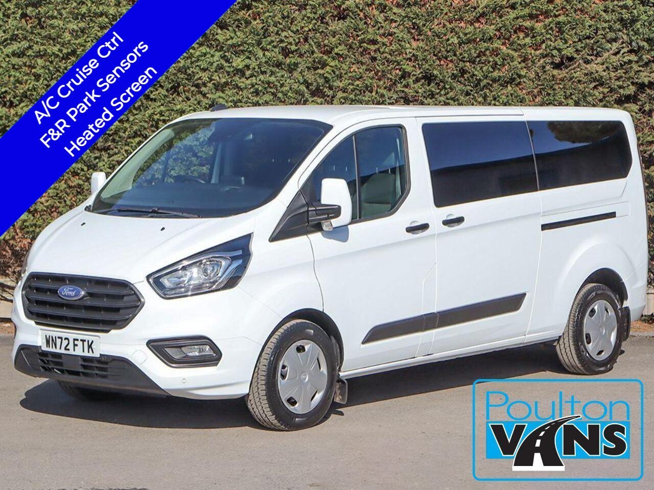 2022 (72) Ford Transit Custom 320 Trend 2.0tdc, 130ps, L2 LWB 9 Seat Minibus, Heated Screen, Air Con, Cruise Control, Privacy Glass, Front + Rear Parking Sensors, Carplay, Android, Dab Radio, USB, Touch Screen Media, Bluetooth, Stop Start, Auto Lights, Electric Windows, Electric Folding Mirrors, Multi-Function Leather Steering Wheel, Remote Central Locking, Spare Key, Clip Out Rear Seats With Isofix, Side Load Door, Barn Rear Doors, Heated Rear Windows, Rear Wash Wipe, Colour Coded Front Bumper, Led Running Lights, Front Fog Lights, Kombi, [Eu 6], 6 Speed, One Owner, Ex Contract Lease, Ulez Compliant.